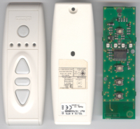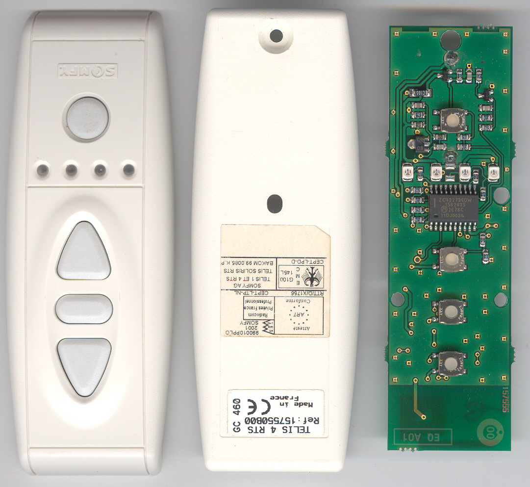 433 MHz transmitter 4 channels (means you can control 4 individual receivers) Up, Down arrow button (open,close action) Bar (stop, center position action) Round button selects channel 1,2,3,4 or all.